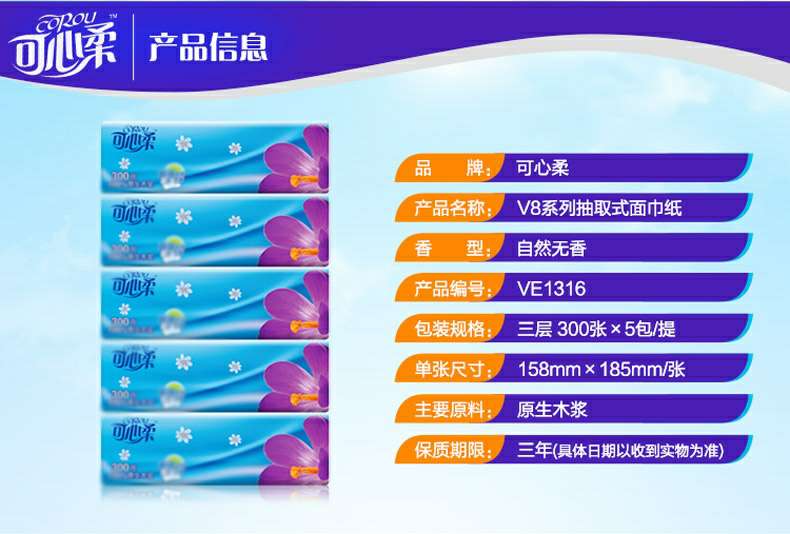 可心柔 V8系列CoRou云柔系列白色木浆110抽