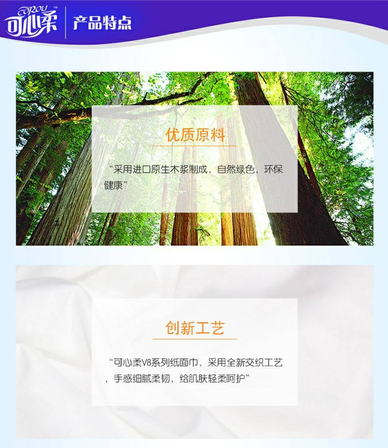 可心柔 V8系列CoRou云柔系列白色木浆40抽